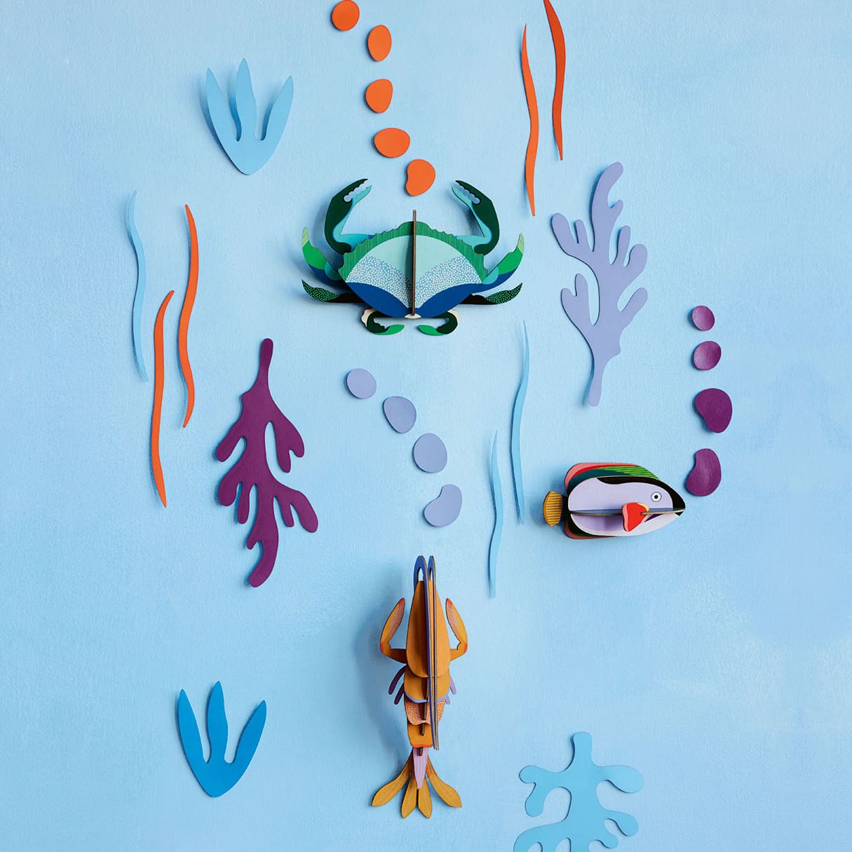 Bubbling their way up from salty seas and freshwater lakes, these fishes and seaweed are happy to turn your rooms into an aquatic paradise! Unwrap a surprise chest full of pop-out cardboard animals and paper leaves and build up a magnificent world on your walls.