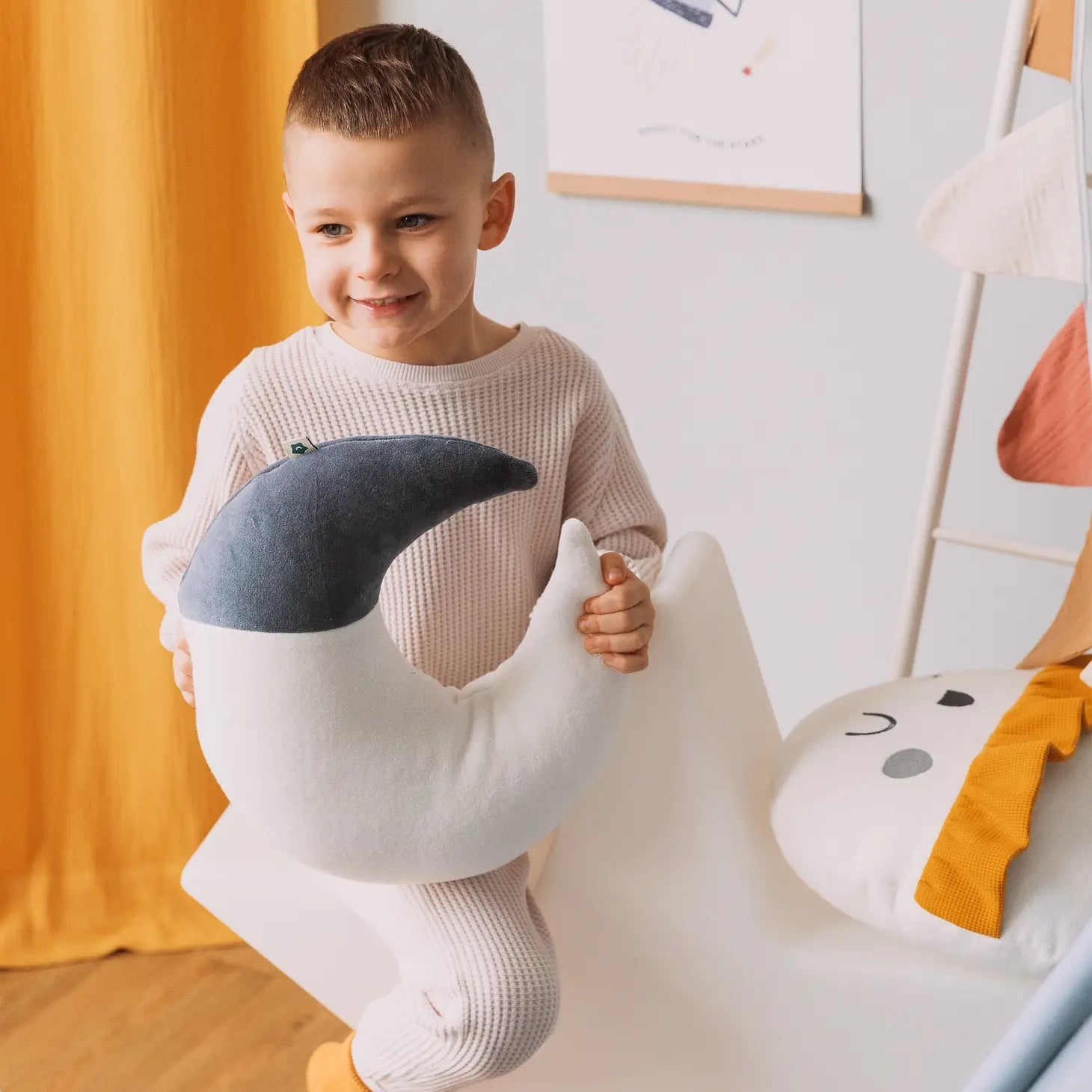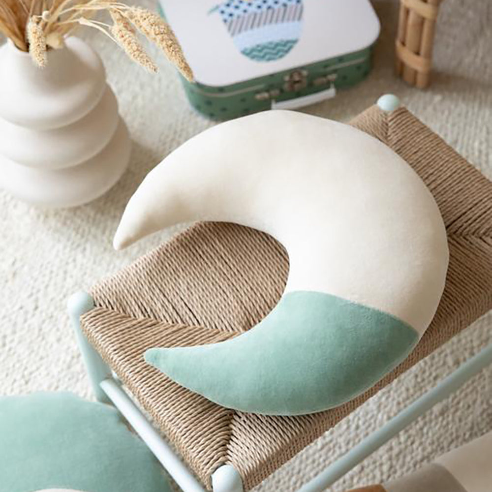 The crescent moon cushion is a perfect way to add a touch of whimsy to your nursery, playroom, canopy, and infuse a celestial charm that will lighten up your little one’s room.